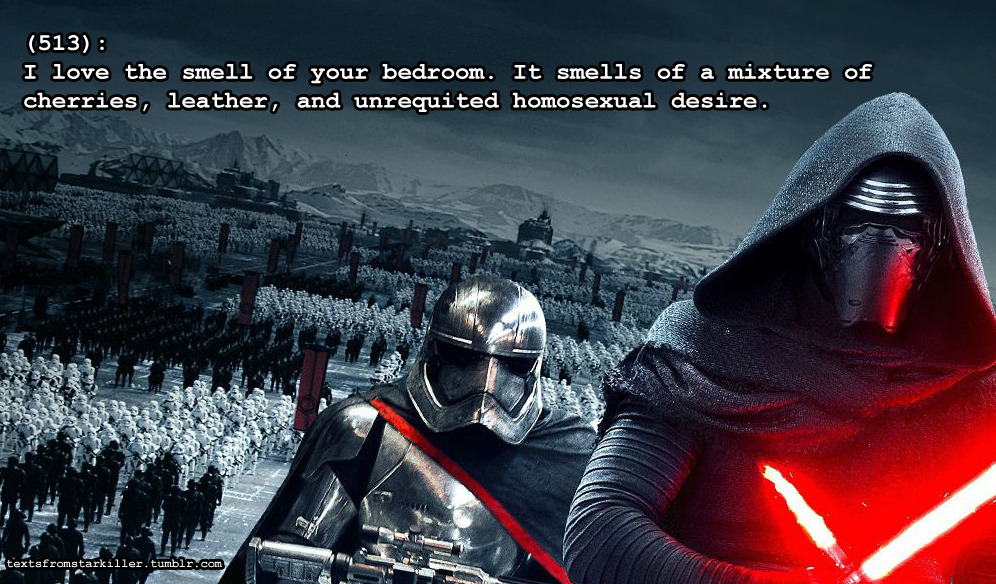 rabbithux Uncategorized March 21, 2016December 11, 2018 1 Minute textsfromstarkiller: (513): I love the smell of your bedroom. It smells of a mixture of cherries, leather, and unrequited homosexual desire. Share this: Share on X (Opens in new window) X Share on Facebook (Opens in new window) Facebook Like Loading... Related Published by rabbithux View all posts by rabbithux Published March 21, 2016December 11, 2018