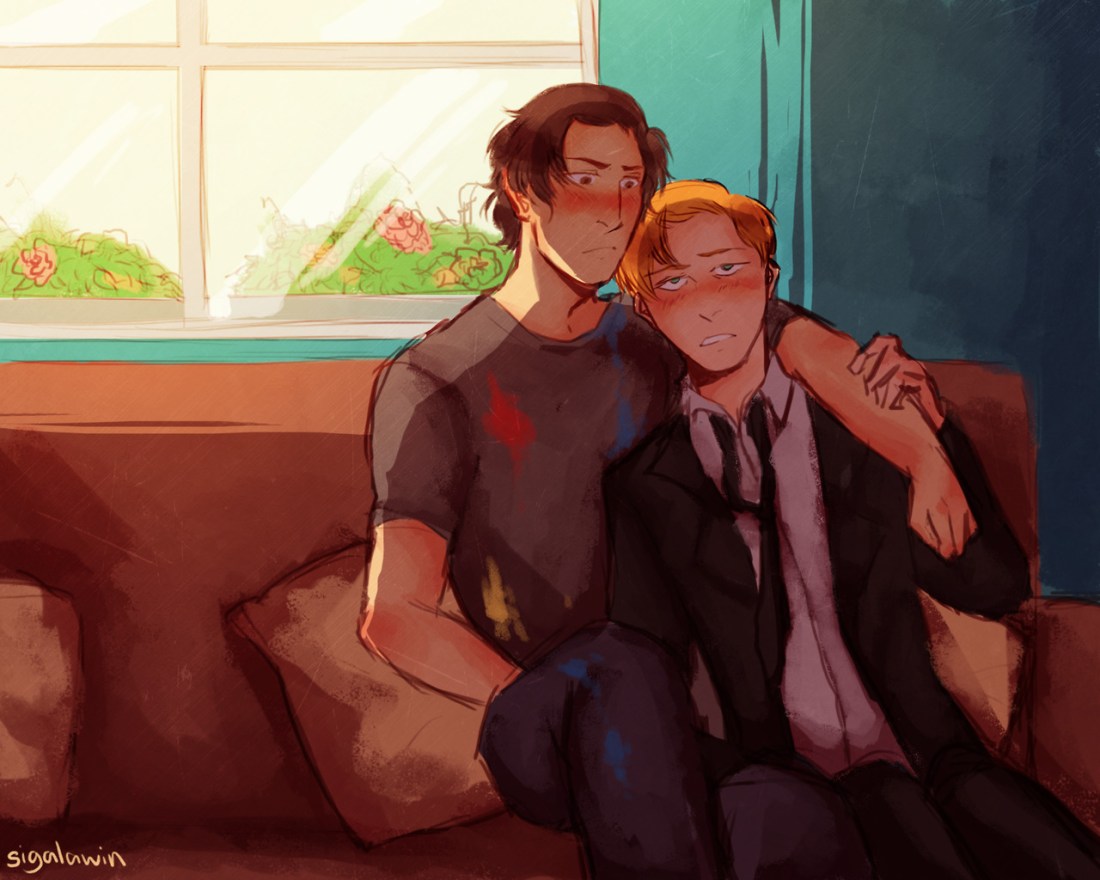 “Like you wouldn’t believe.” Hux sighed, sinking into the twin comforts of both Kylo and the couch. He squeezed gently at Kylo’s thigh, eyes fluttering closed as a light kiss was pressed to his forehead. “But I’m feeling better already.”