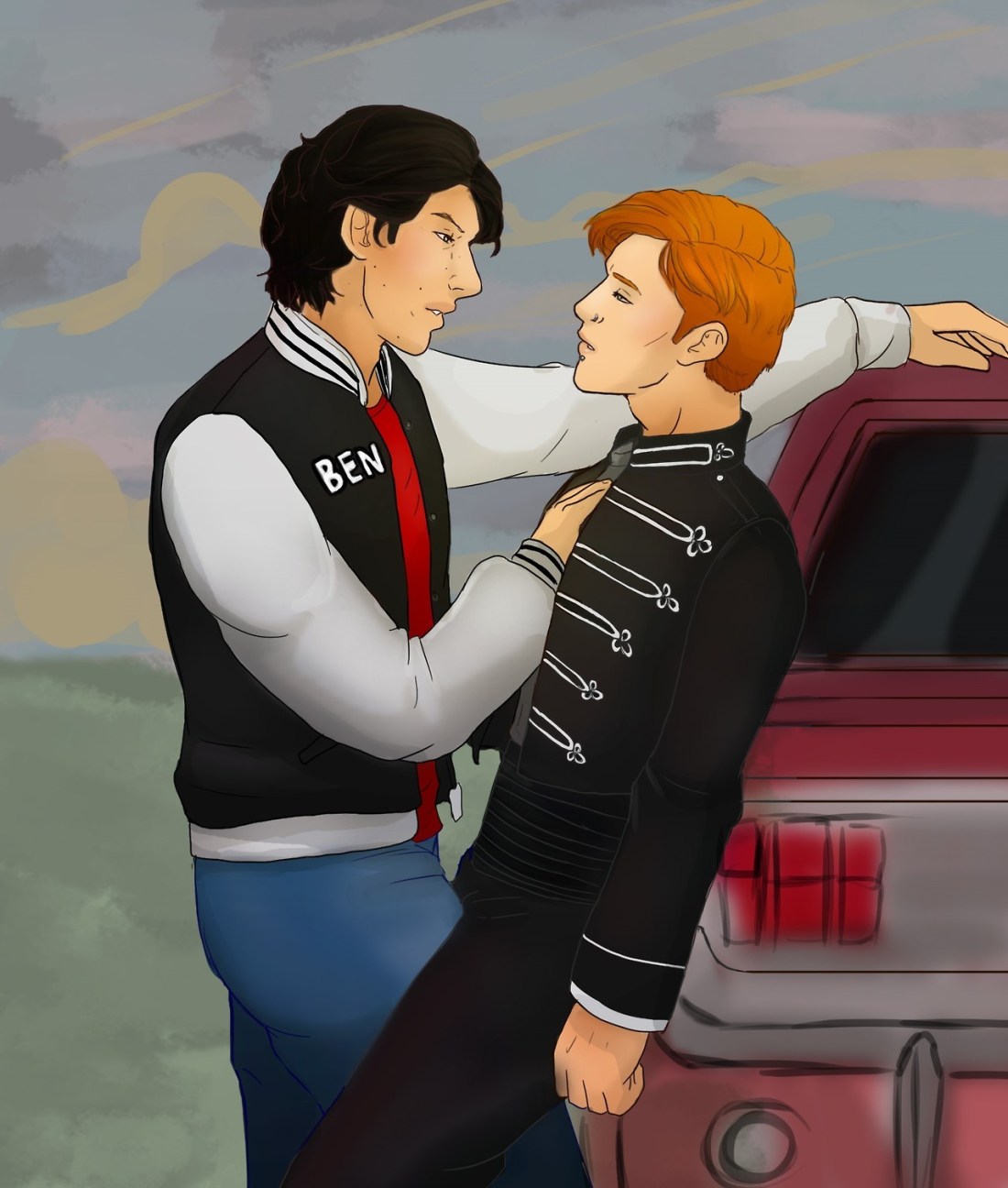 Ben leaned closer, nose nearly touching Hux’s, breath warm against his lips, just inches away. Hux started to sway forward, beyond caring for the consequences, when Ben stepped back, keeping Hux’s narrower body at arm’s length, trapped against the car.