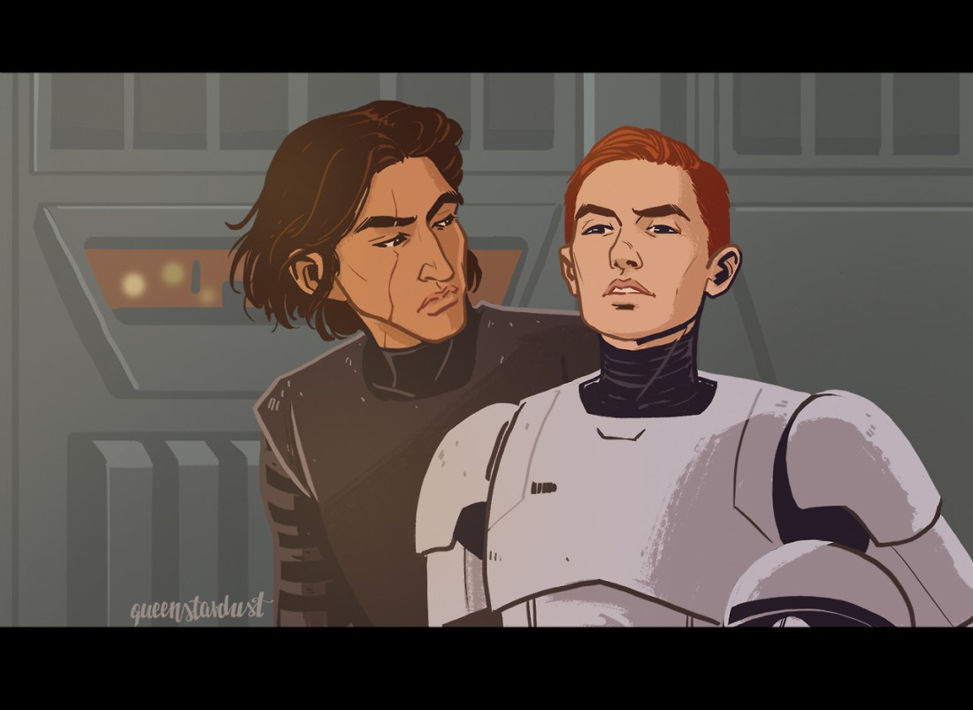An imminent attack on Resistance facilities brings the Knights of Ren to their outpost and with them their leader Kylo Ren, who seems to have an odd fascination with said stormtrooper. After a while of silently staring, creeping around and stopping a blaster shot aimed at LU-9235, Kylo Ren asks LU-9235 to meet him in his quarters.A little idea I had in my head for a while and I decided to illustrate it quickly. I have no idea how it ends though?!