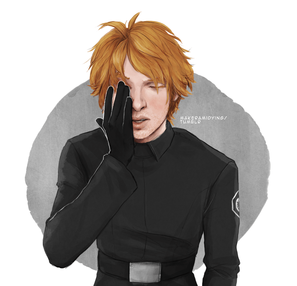 I got a couple of requests for Hux after doing bad hair day Kylo, but I think Hux would just never allow himself to have bad hair days. So this is probably more of a bad hair moment after he fell asleep at his desk or something