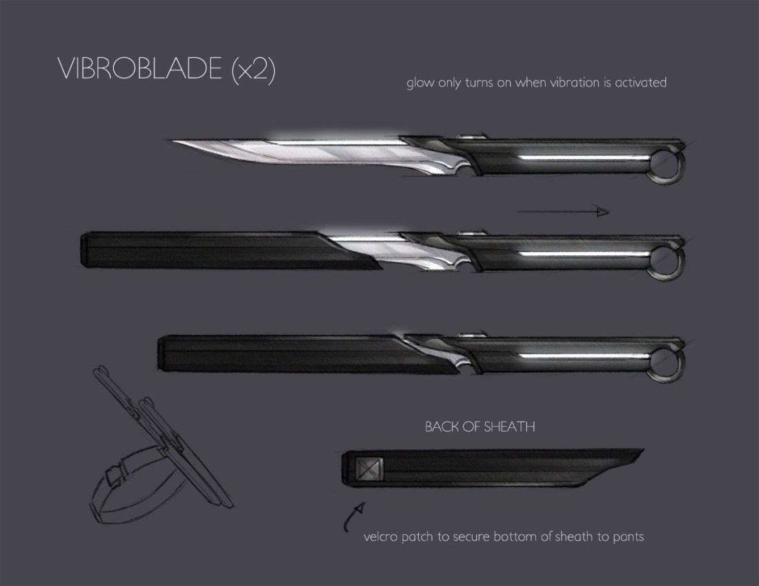 A friend of mine is making a cosplay of my Sniper Hux design, and she asked for a ref of his vibroblades! Knives are fun