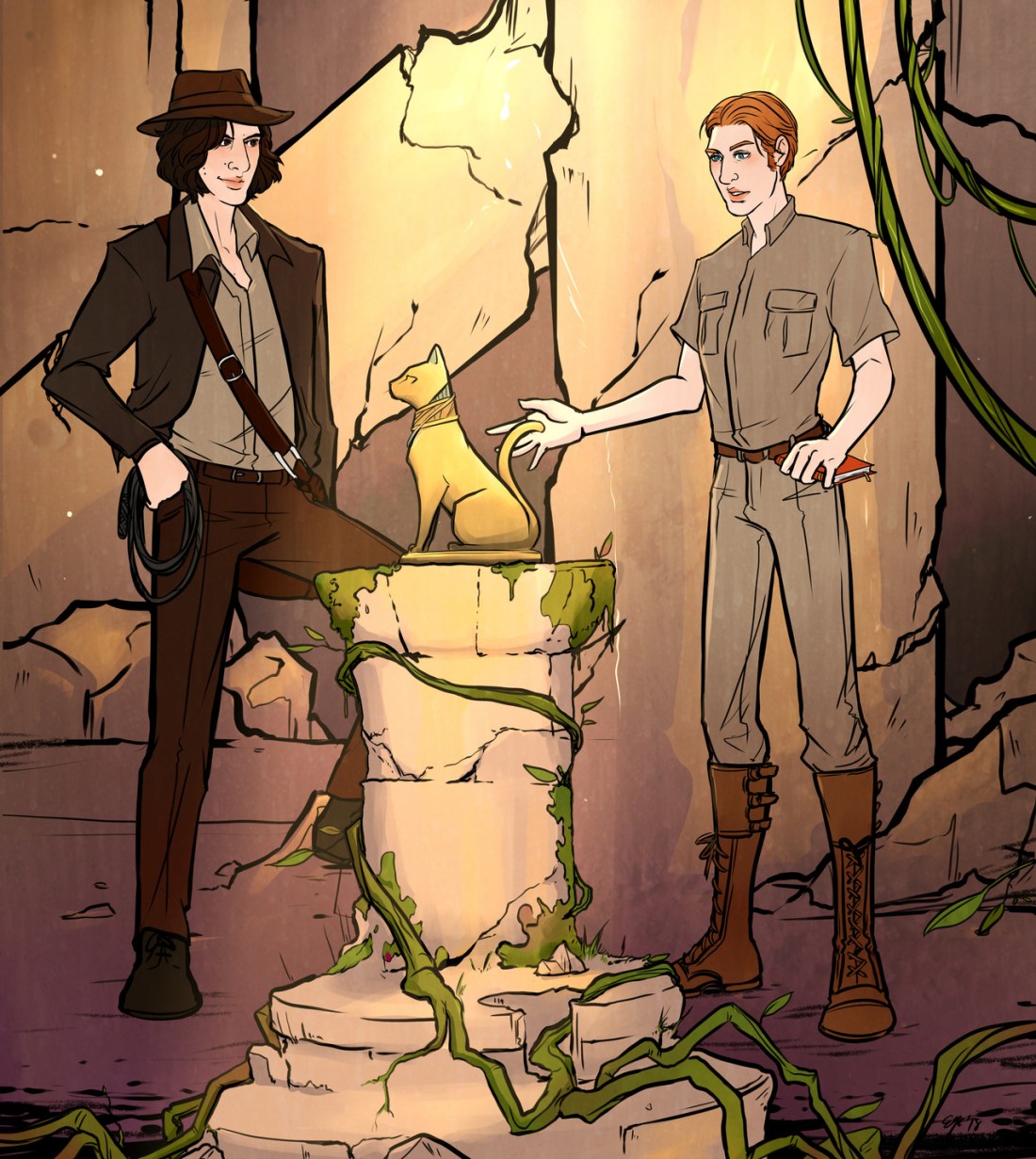 At last, I can post this beautiful commission of archaeologist Hux and treasure-hunter Kylo that @elviscl did for me months and months ago. I was waiting to update My Life in Ruins with this scene, which I have now done! Thank you for the beautiful art!