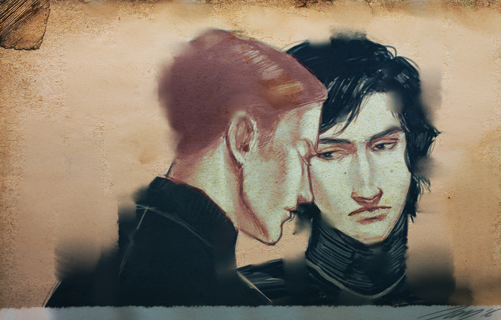 I don`t know what is going on there) It was a request from my friend, who gave me a very inspiring photo ref of embroidered red robe with peacock feathers and said, that she wanted to see Hux in it. The sketch took me 20 minutes or so, and it was done. And I still don`t know what is the story behind it, why Hux is dressed like that. I leave it to your imagination)))