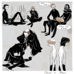 -Under the Ruins of a Walled City, chapter 2, by Hollycomb.I’m okay with sad!! This is gorgeous– I love the way you used the light, which is so important to the whole atmosphere of his room here, and to this part of the story in general, and I’m so glad you drew this scene. His longing and regret are palpable and lovely and sad, but I think there’s also some real hope here, because he’s reaching into that light ;___; Thank you so much for drawing this! You don’t know how excited I get when I get an inkling that you’re working on something from my fic :3