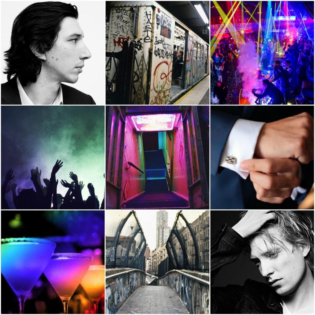 Hux’s lips are a tight, thin line as he wades into the heaving crowd. Rays of color cut through the dark heat of the club, flash into existence and then shudder out of it just as quickly. He ducks one shoulder, begins to wind his way through the patrons. Against the roil of skin, neon fishnet, and lamé, his tailored black suit is a dead pixel.