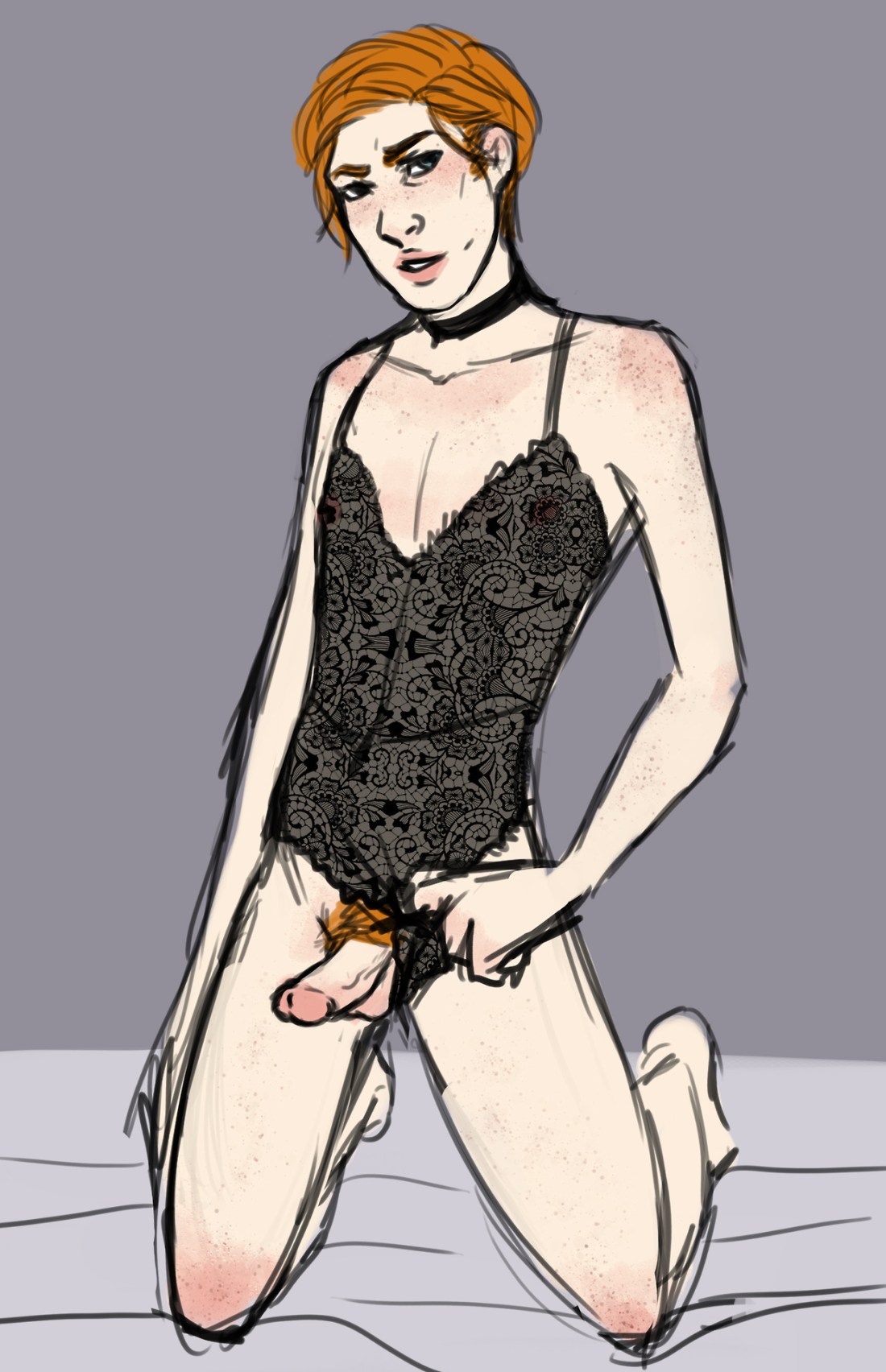 I know I’ve been super absent and will be trying to reply to everyone as soon as I can, but for now have some lacy leotard and dick.