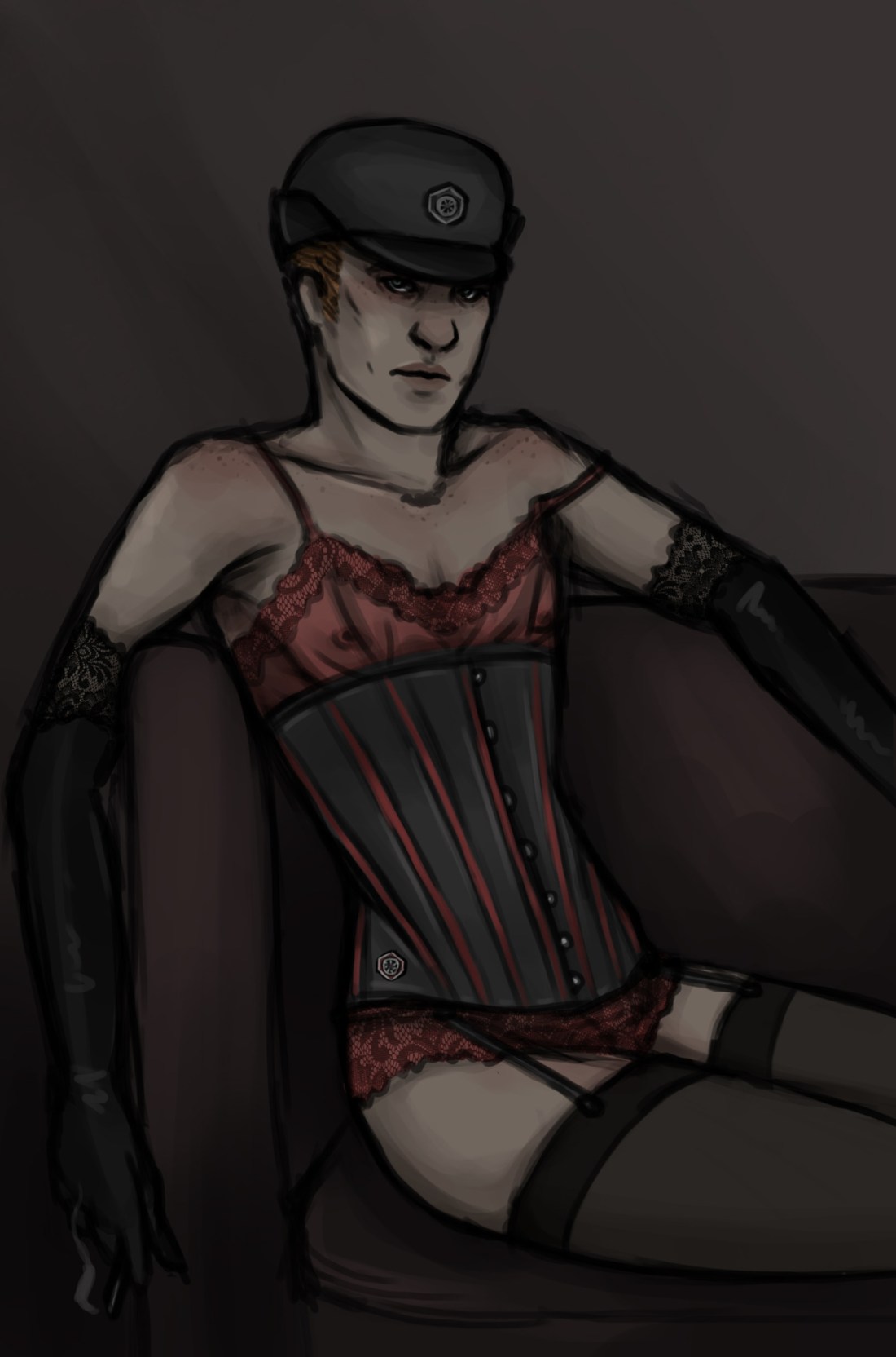 The original photo I was working on based on @griesly fic Indulgence before I got distracted drawing porn. I took a few artistic liberties in design but hope I got the overall feel right.