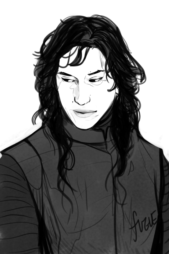 He needs hairpins to keep his bangs in place.This is the best fucking thing to wake up to omfg. Jesus more long haired Kylo please, he looks so good like this ❤