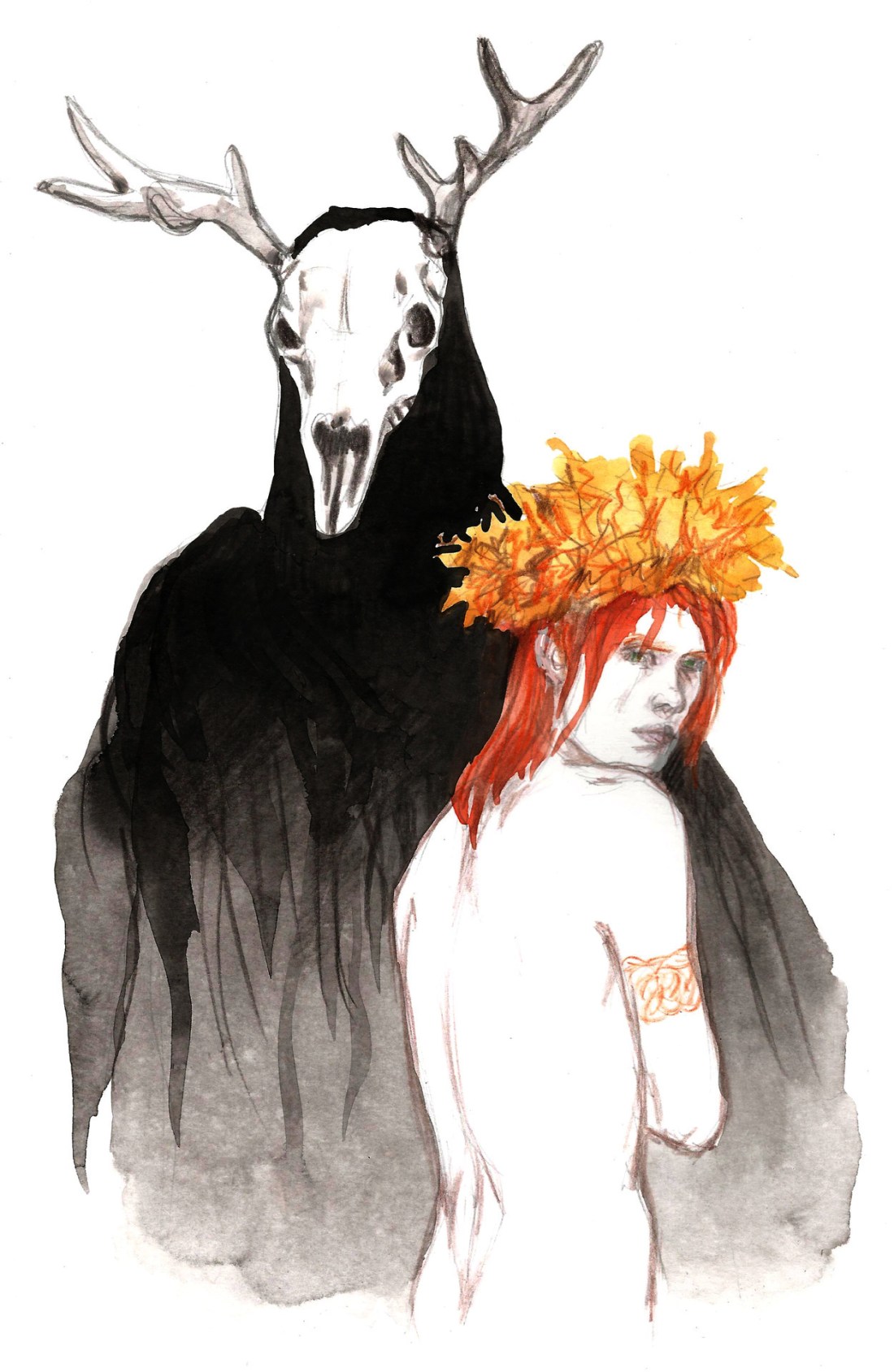 watercolors and black acrylic ink