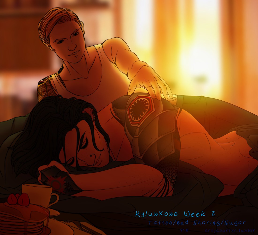 @kyluxxoxo Friday evening i thought of this. with the tats from a piece i made YEARS ago, more developed. plus breakfast in bed, plus Hux admiring his work on his Kylo.