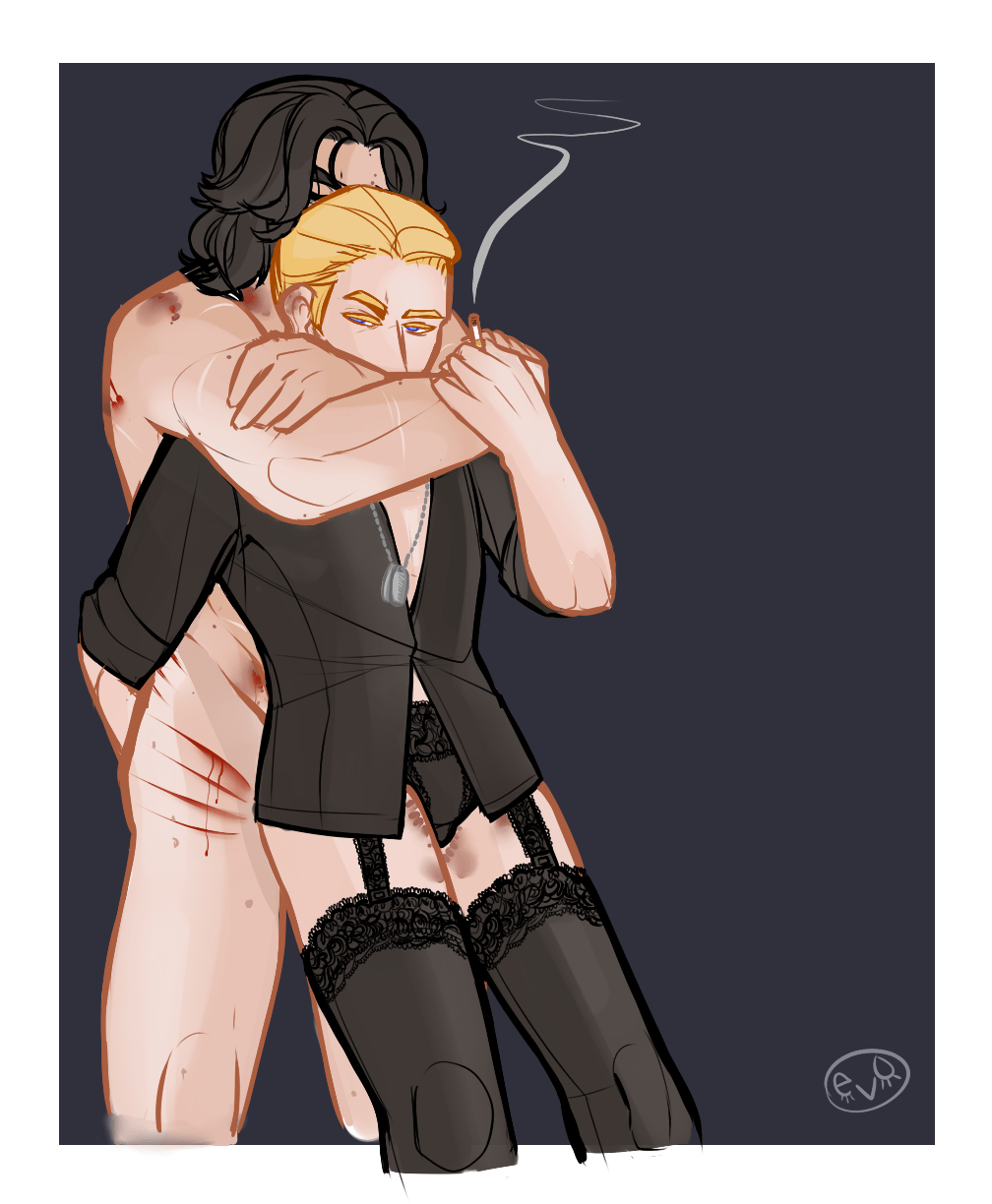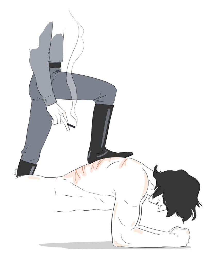 This is the companion piece of Kylo settled down to do some meditation. Hux thinks meditating is a waste of time – he does like to take a private moment though to clear his head and smoke in the refresher. The cold tiles against his warm skin feel nice I’d imagine. :3
