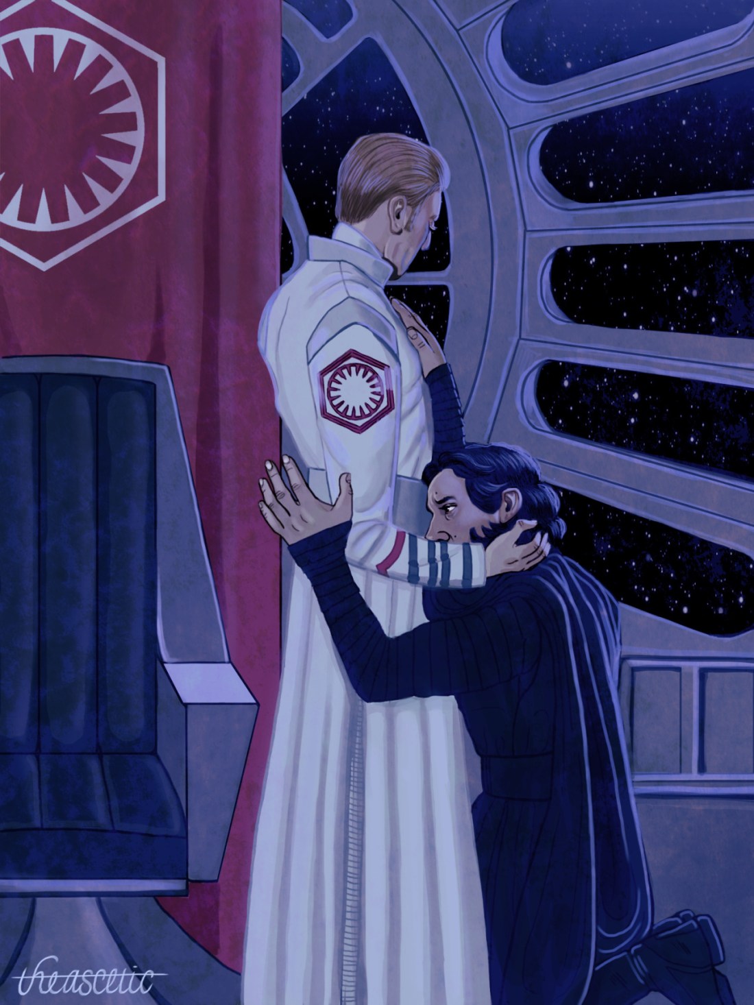 As a way to thank people who have contributed to my gofundme, I entered their names into a random sorter to win a drawing of their choice. The request this time was Emperor Hux with a submissive Kylo.